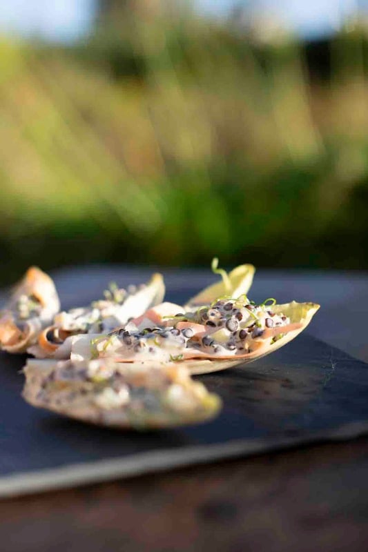 J’arrive avec ma roulotte bleue et tout mon matériel… vous êtes une escale de mon roadtrip culinaire… Je considère que la cuisine est médecine et je me connecte aux besoins du groupe et des individus.